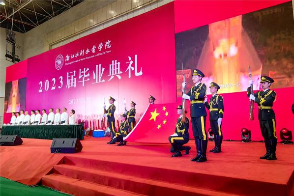 毕业典礼在全体师生齐声合唱《浙江水利水电学院校歌》《我和我的祖国》的奋进旋律和悠扬歌声中圆满落幕。