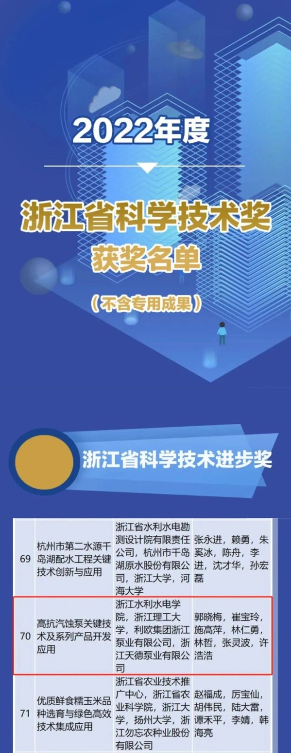 11月10日上午,浙江省创新深化大会在省人民大会堂召开,省科技厅公布2022年度浙江省科学技术奖获奖名单。我校牵头、机械与汽车工程学院院长郭晓梅教授牵头主持的科研成果“高抗汽蚀泵关键技术及系列产品开发应用”喜获浙江省科学技术进步奖三等奖。