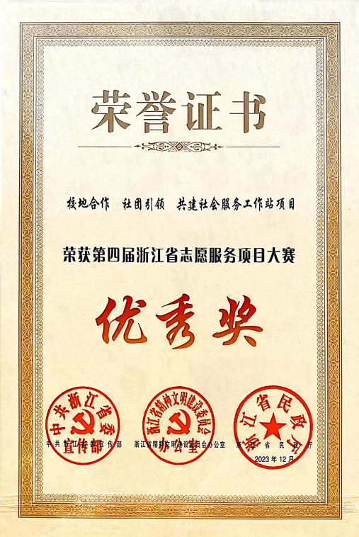 为持续放大“浙江有礼”省域文明新实践品牌效应,继续在推动志愿服务事业发展中发挥排头兵作用,省委宣传部、省文明办、省民政厅举办第四届浙江省志愿服务项目大赛,校团委、水利与环境工程学院团委联合申报的《校地合作 社团引领 共建社会服务工作站》项目获“优秀奖”。