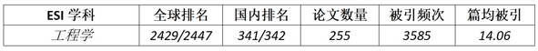 据科睿唯安(Clarivate)20243月发布的最新一期《基本科学指标数据库》(Essential Science Indicators,简称ESI)统计数据显示,我校工程学(Engineering)首次进入ESI全球排名前1%标志着此学科进入国际高水平学科行列。具体表现如下: