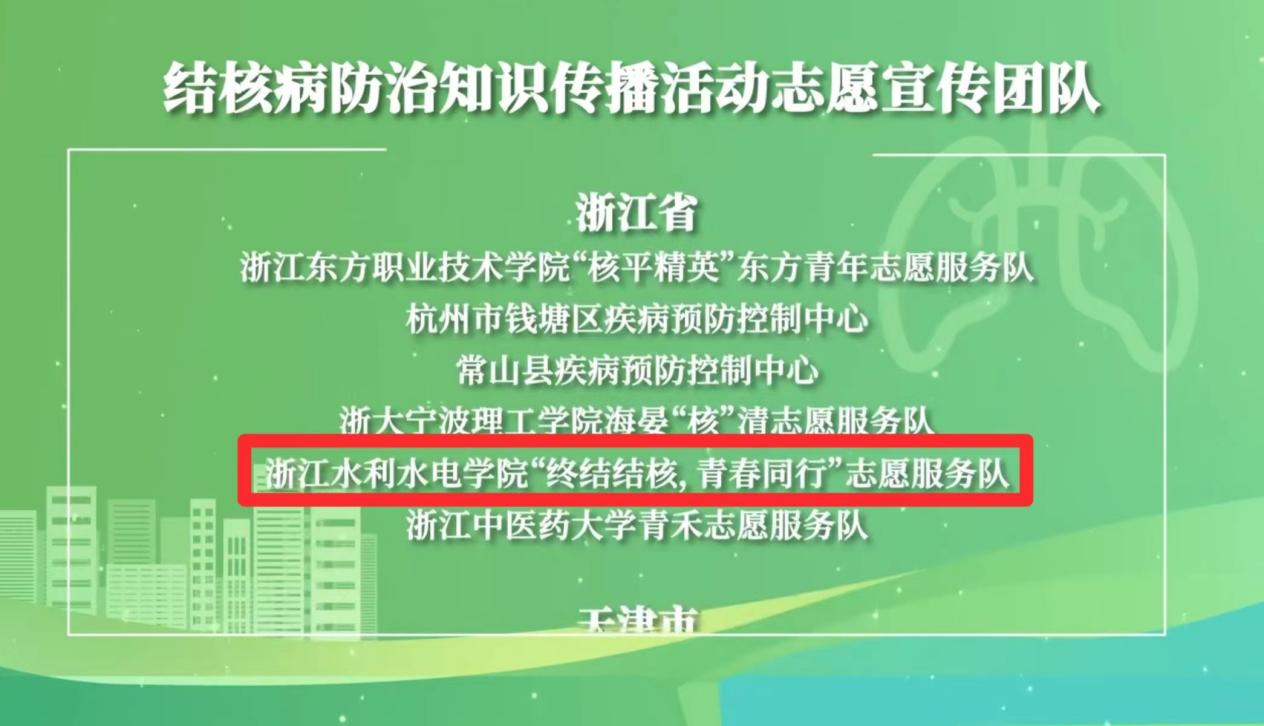 3月24日是第29个世界防治结核病日,今年的宣传主题是“你我共同努力 终结结核流行”。23日上午,由国家疾病预防控制局指导,中国疾病预防控制中心和中国健康教育中心主办的主题宣传活动在人民日报健康客户端演播厅圆满举办。活动现场公布了2023年度全国百千万志愿者结核病防治知识传播活动提升行动推选结果榜单,我校“终结结核,青春同行”志愿服务队获评全国“结核病防治知识传播活动志愿宣传团队”荣誉称号,全国仅85支团队获此荣誉。