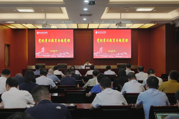 6月26日上午,党委书记钱天国在钱塘校区为学校党委班子成员、全体中层干部讲授“树牢党纪意识加强纪律建设——学习贯彻《中国共产党纪律处分条例》”专题党课,教育引导党员干部学纪、知纪、明纪、守纪,把纪律规矩转化为政治自觉、思想自觉、行动自觉,为全面建设高水平应用型大学提供坚强的纪律保障。
