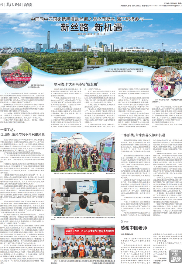 编者按:7月24日,浙江日报6版整版刊发中国同中亚国家携手推动丝绸之路全面复兴专题稿件,我校牵头的吉尔吉斯斯坦鲁班工坊作为元首级鲁班工坊,填补了中吉两国高等技术教育合作的空白。专刊稿件第一部分“一座工坊,让山脉、阳光与风不再只是风景”详细报道了有关做法。(点击下图阅览原文)